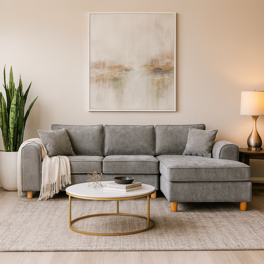 Un seccional de excelente tamaño, cómodo y versátil, pensado para integrarse fácilmente en espacios modernos y convertirse en el centro de tu living.