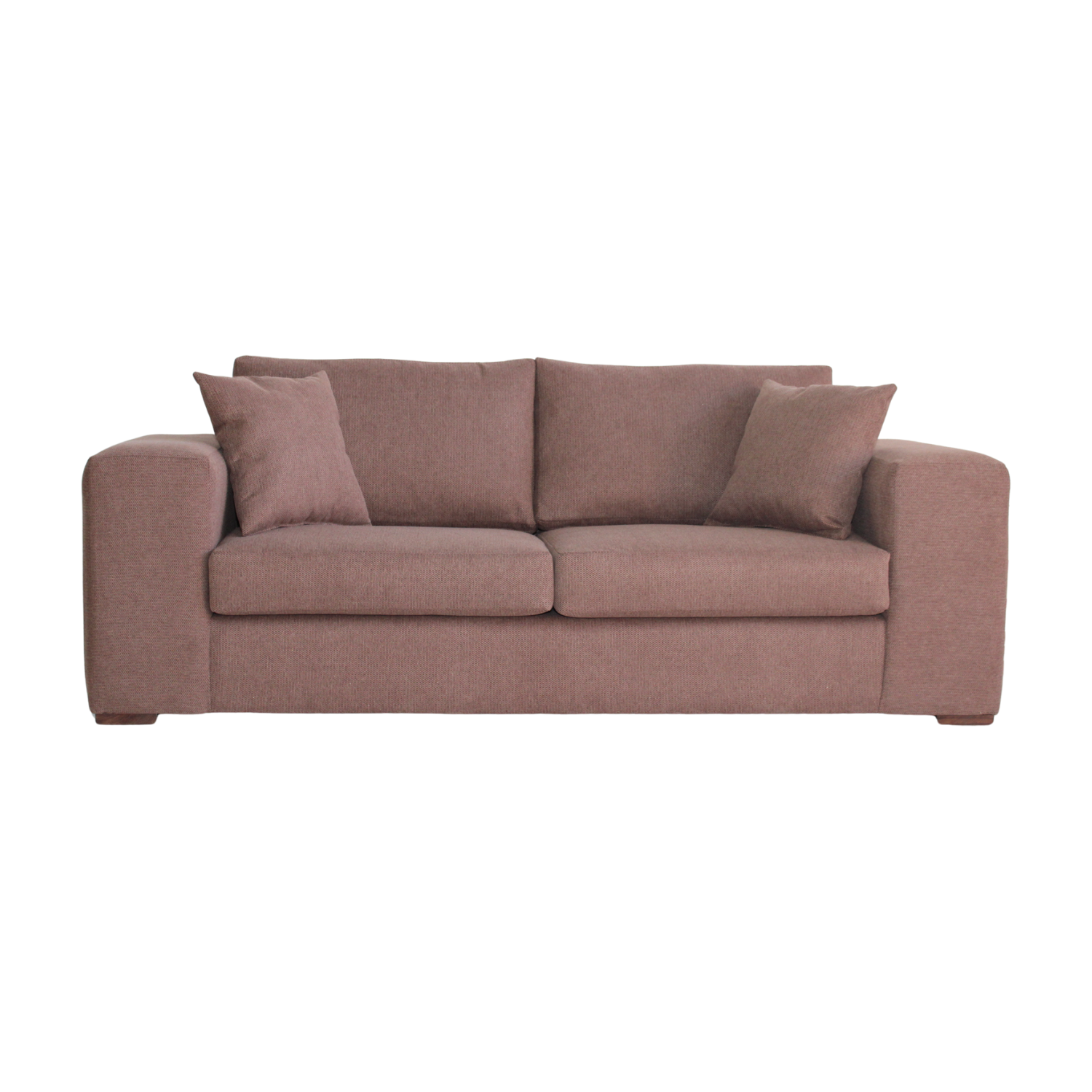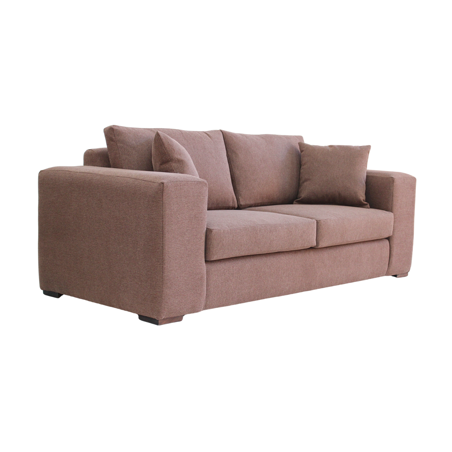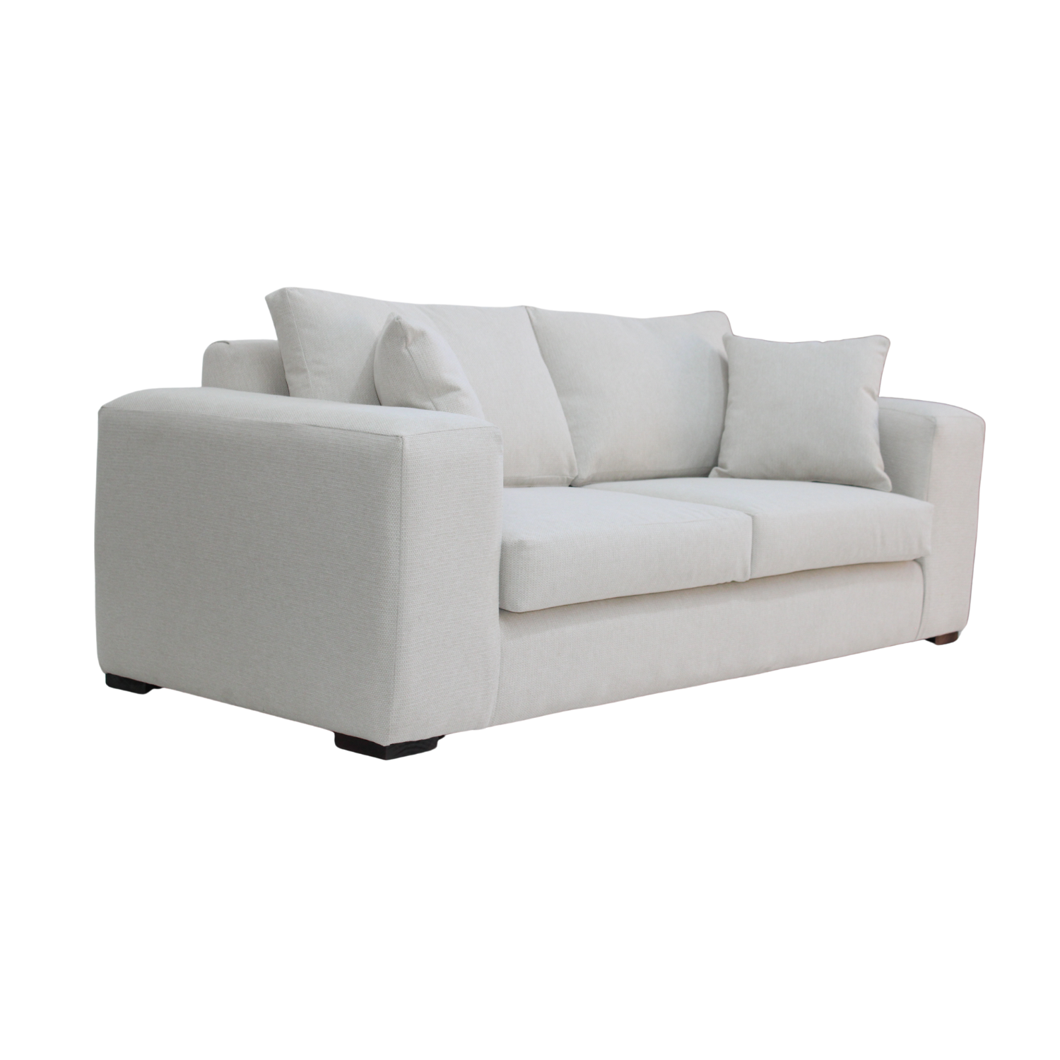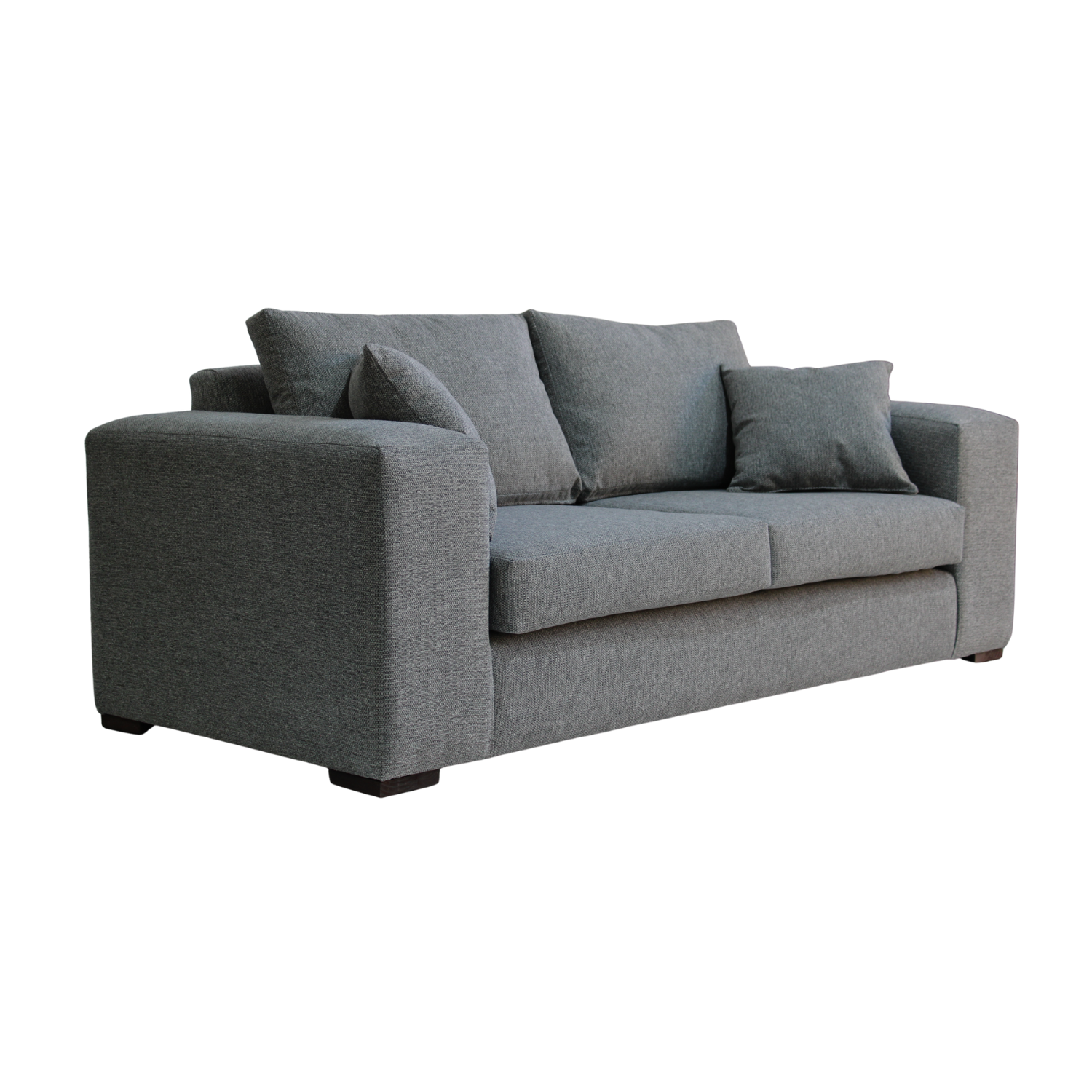 Los cojines de asiento con espuma de alta densidad y respaldo con relleno de algodón sintético entregan un confort superior. Sus patas de madera oscura complementan el diseño con un toque contemporáneo.